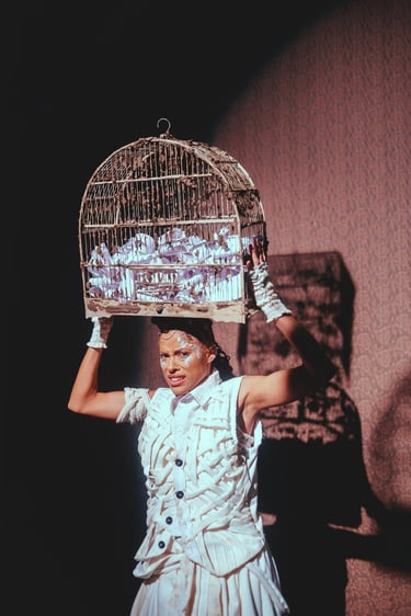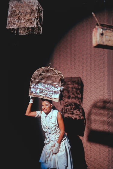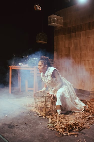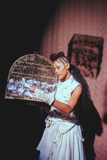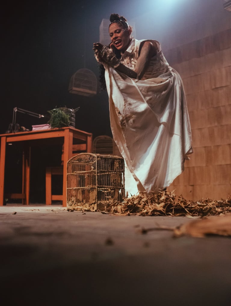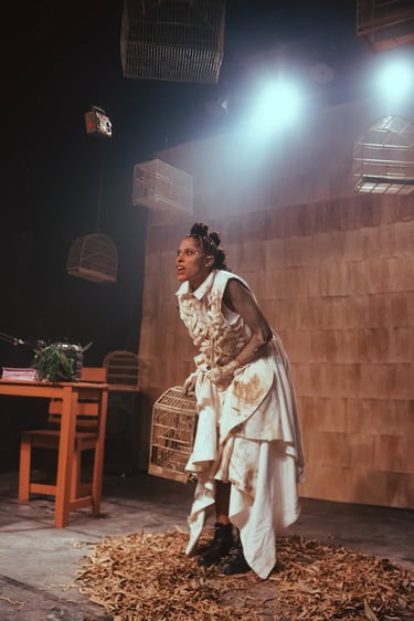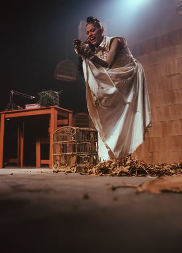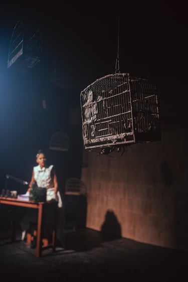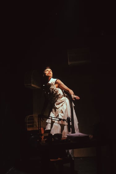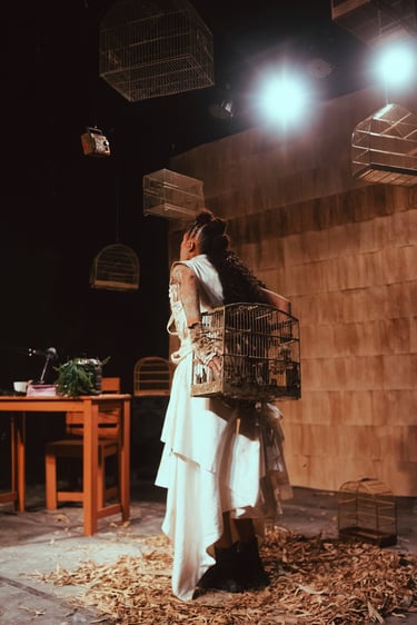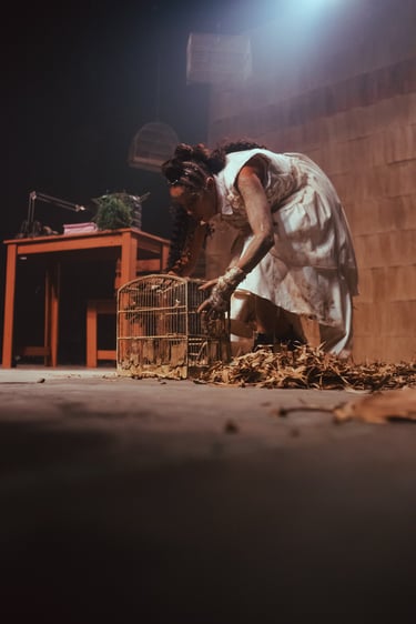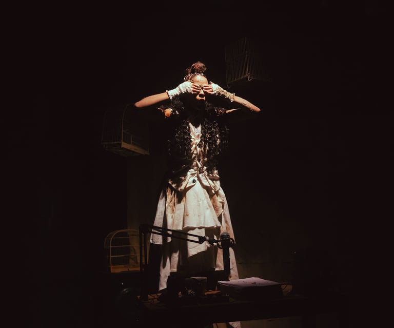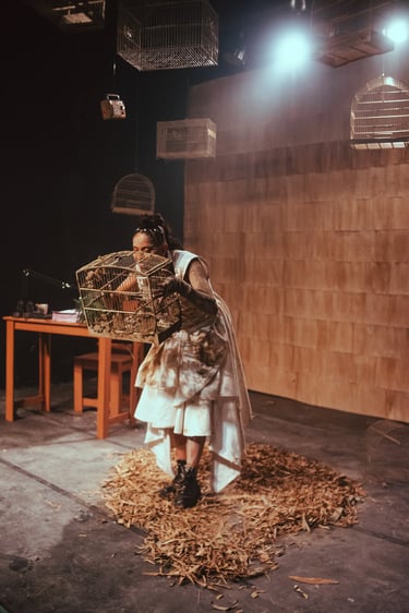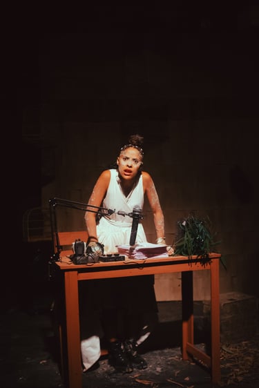 "As Frestas Empoeiradas da Memória” é um solo interpretado por Fernanda Duarte que integra o repertório “Solos Flutuantes”. Em cena, uma radialista negra, moradora de uma comunidade rural, conduz um programa chamado “Partilha”, onde compartilha vivências e histórias do cotidiano. Entre transmissões e devaneios, ela atravessa suas próprias memórias, feridas e afetos, transformando a cena em um mergulho íntimo entre realidade e imaginação.