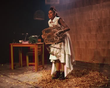 Uma radialista revisita fragmentos e lembranças esquecidas, rasgando as frestas onde a memória insiste em dormir , corpo, voz e silêncio se entrelaçam.