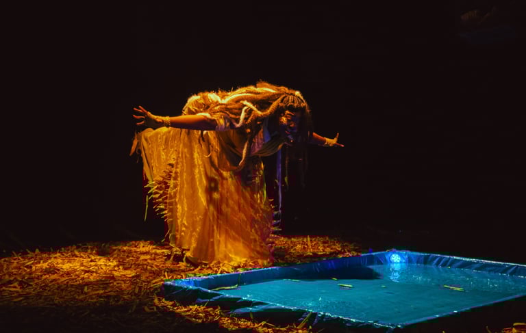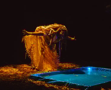 Uma mulher sem memória habita um universo aquático de devaneio. A infância roubada, o corpo que busca sentido e o teatro que se transforma em dança fluida.